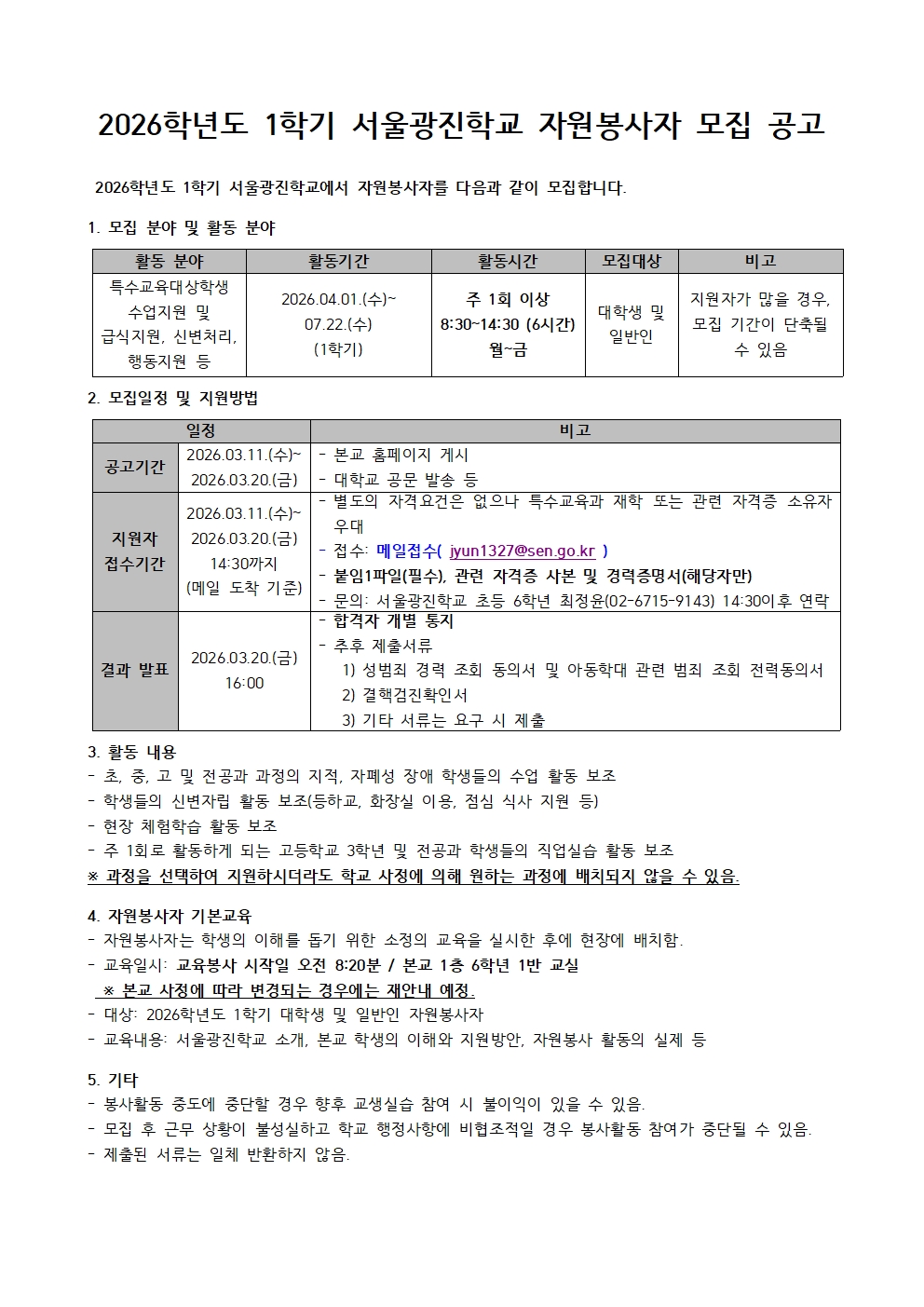 2026학년도 1학기 서울광진학교 자원봉사자 모집 공고 및 신청서.hwp